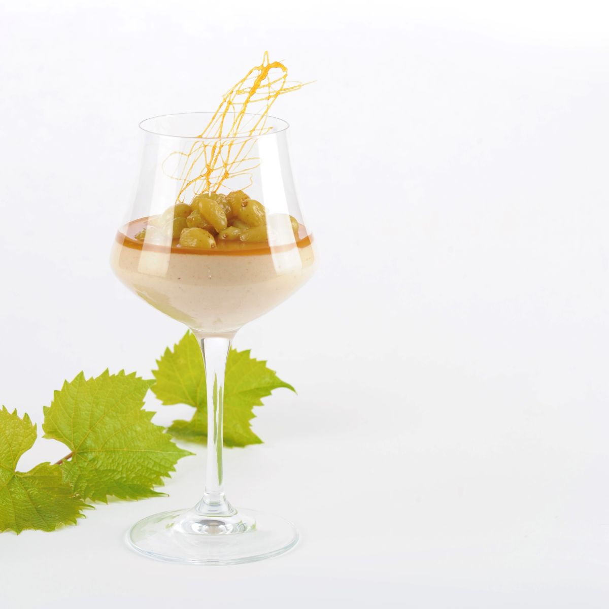 Sestavine: 200 g belega grozdja, 10 g masla, 50 g sladkorja, 50 g medu, 150 ml vode, 30 ml vinjaka, malo cimeta